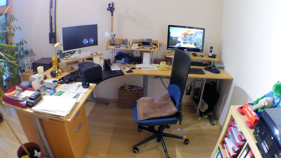 Hier nun drei Aufnahmen zum Vergleich. Das erste Bild zeigt ein Kugelbild. Beim zweiten Bild habe ich formatfüllend gezommt. Das dritte Bild zeigt die Sicht des zweiten Bildes mit dem Normalobjektiv.